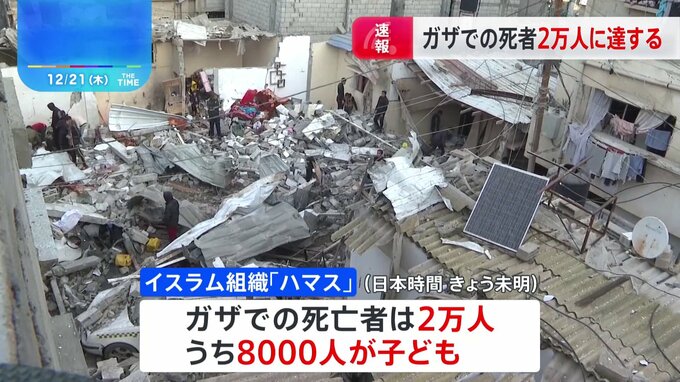 イスラエルとイスラム組織ハマスの戦闘が始まった10月7日以降、パレスチナ自治区ガザで死亡した人の数が2万人に達しました。ロイター通信によりますと、20日、ガザ南部のラファでは病院の近くにイスラエル軍による…