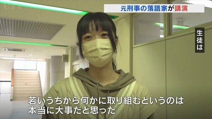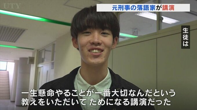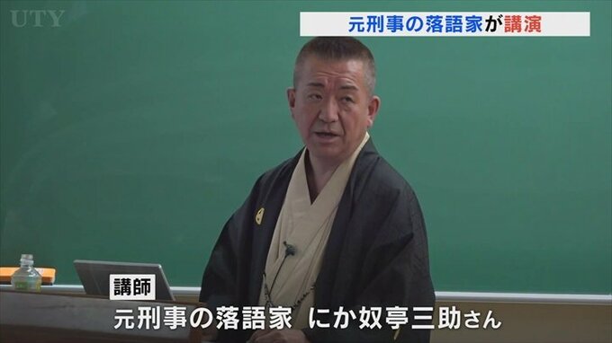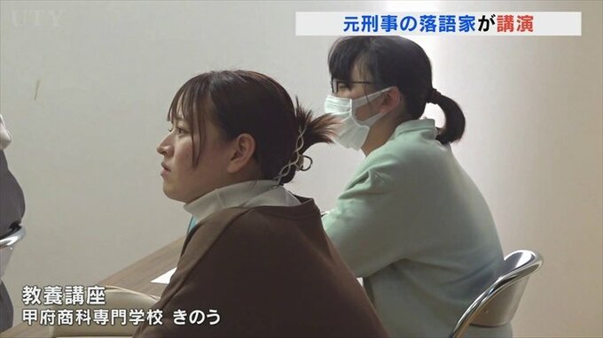 元刑事の落語家が甲府市の専門学校で講演しました。