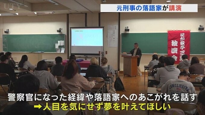 また警察官になった経緯や落語家にも憧れていたことなどを話し、人目を気にせず自分の夢を叶えてほしいと訴えました。