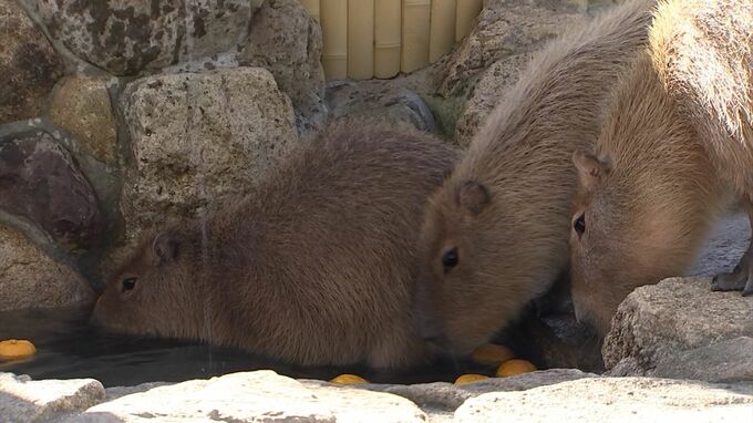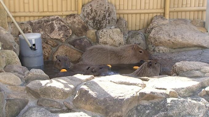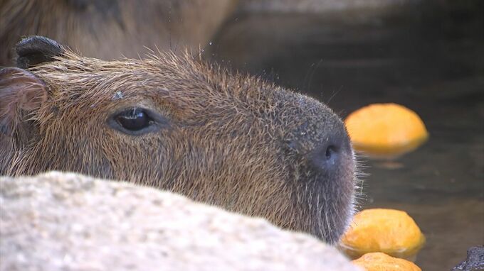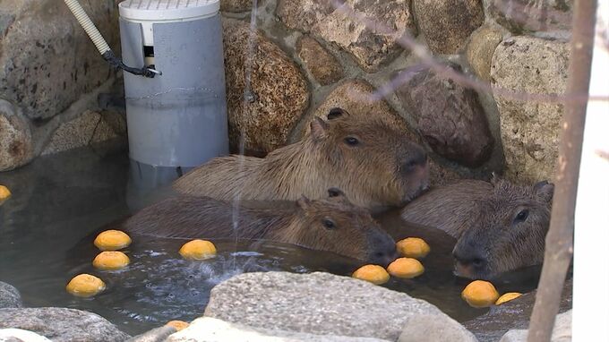 (池田動物園カピバラ担当 花島里奈さん)「ゆず湯に入ると健康に過ごせると言われていますから、健康にこの冬を乗り切っていただきたい」