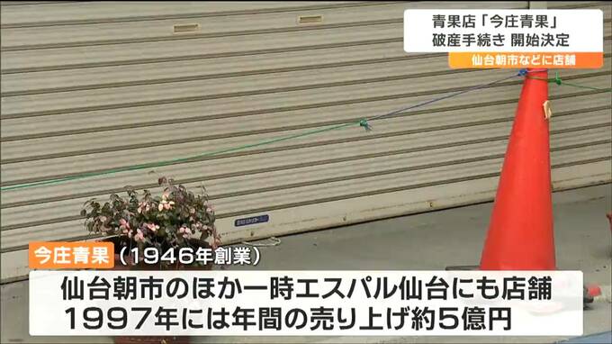 仙台市青葉区の仙台朝市などに店舗を構えていた青果店「今庄青果」が、仙台地方裁判所から破産手続きの開始決定を受けました。