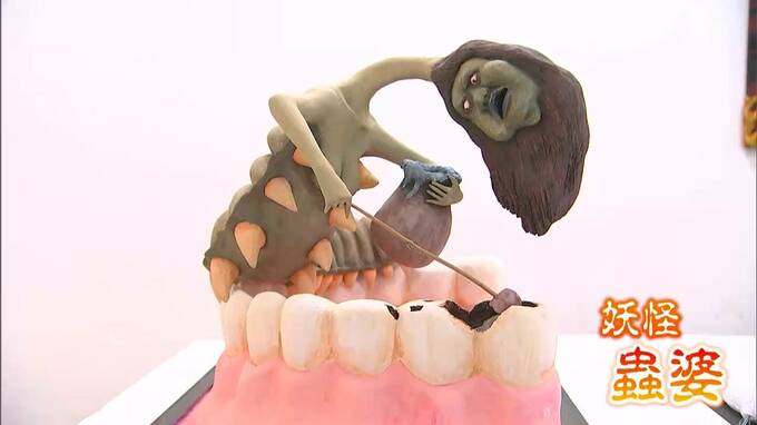出会えたらSNSがバズるという【画像①】のような妖怪「いいね!いいね!」に、口の中に住み着いて歯を溶かす【画像②】の「蟲婆(むしばばあ)」。