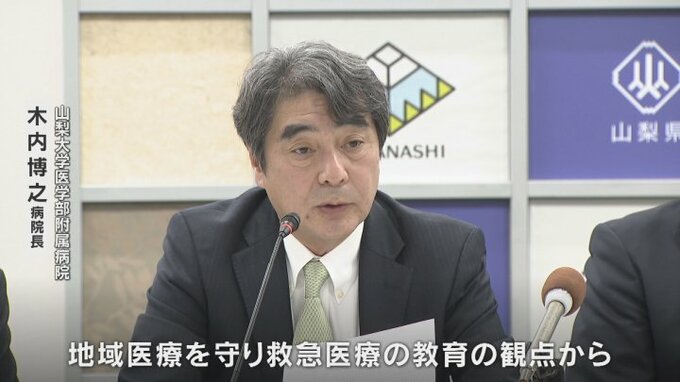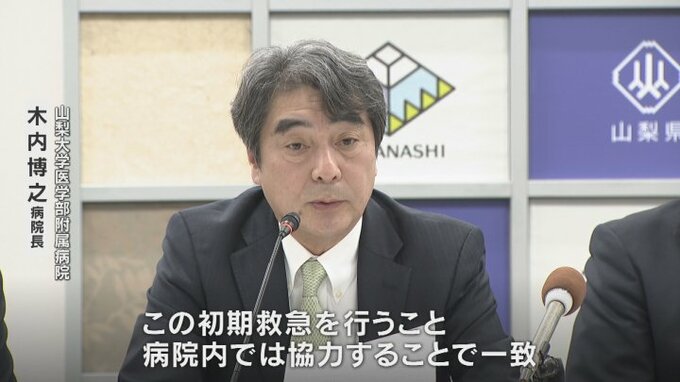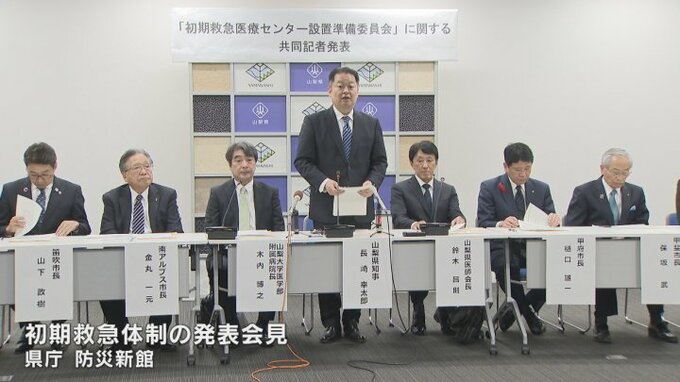 21日、長崎知事と県内の首長ら関係者が会見し、山梨大学附属病院に初期救急医療センターを立ち上げると発表しました。