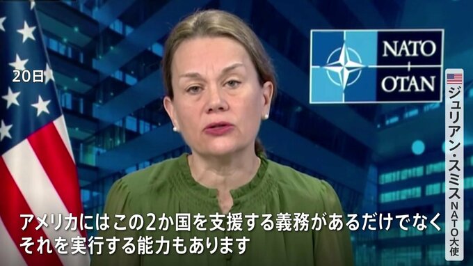 アメリカのNATO大使がJNNの単独インタビューに応じ、アメリカはウクライナだけでなく、戦闘中のイスラエルに対しても支援を続ける能力があると強調しました。アメリカ ジュリアン・スミスNATO大使「アメリカには…