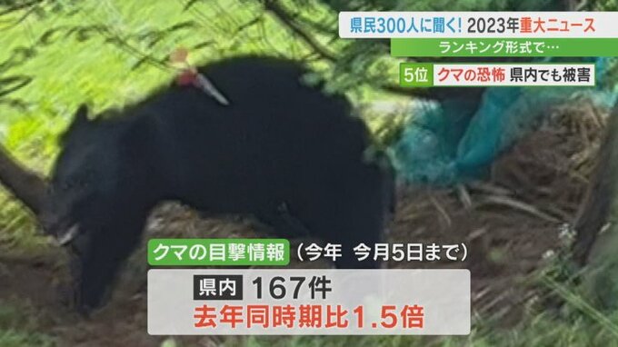 今年の県内のクマの目撃情報は12月5日までで167件で、去年の同じ時期の1.5倍に上っています。