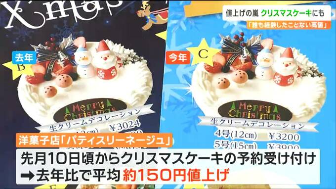 値上げラッシュは、もうすぐやってくるクリスマスにも影響を与えています。原材料の値上げがケーキ作りで大忙しの洋菓子店を直撃しています。