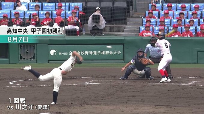 初の甲子園に進んだ高知中央は、1回戦から猛攻でリードを奪い、愛媛の川之江に勝利。気迫の全力プレーで、“甲子園初勝利”を挙げました。