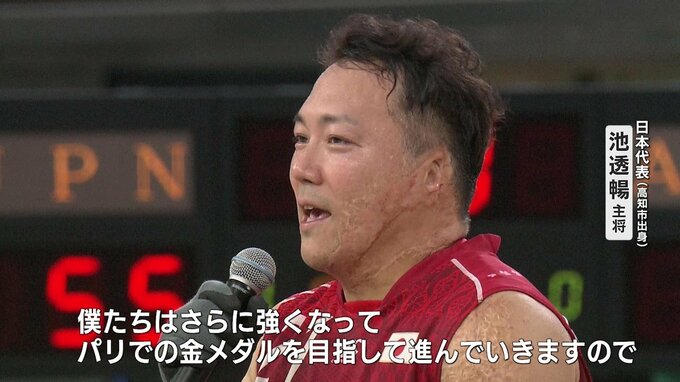 「これからもパリに向けて、全力で次の『新しい日本』を作って、僕たちはさらに強くなって、パリでの金メダルを目指して進んでいきますので、引き続き応援よろしくお願いします!」
