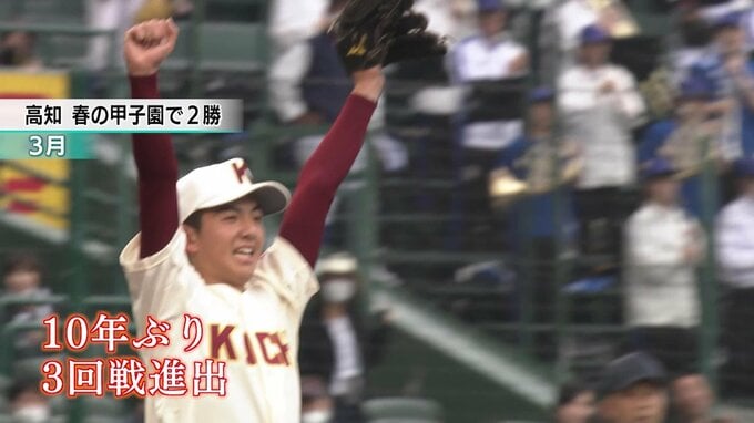 WBCと同じ時期、野球で躍進したのが高知高校です。2年連続20回目の出場となった春のセンバツ高校野球。2回戦まで勝ち進んだ高知は、大阪の履正社を相手に終盤まで劣勢でしたが、8回に起死回生の逆転タイムリー。そのまま逃げ切り10年ぶりの3回戦進出を決めました。