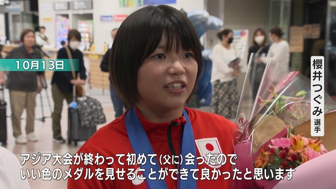 「(父・優史さんには)アジア大会が終わって初めて会ったので、いい色のメダルを見せることができて良かったなと思います。(パリ五輪では)優勝したいと思っているので、少し休んでから、これからもっと気を引き締めて『絶対優勝するんだ』という気持ちを持って、もっともっと練習していきたいです」