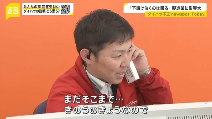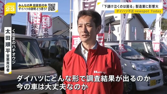 「どんな形で調査結果が出るのか。今の車は大丈夫なのか。いち早くお客さまにお伝えしたい部分はあるので、ダイハツさんに早く聞きたいなと思います。一部車種(出荷停止)というのは、今までもあったと思うんですけど、全車種なので、ちょっと戸惑いが隠せない状態ではあります」