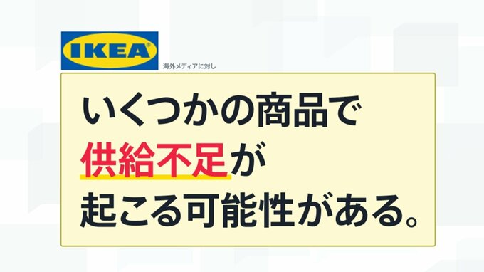 IKEA「いくつかの商品で供給不足が起こる可能性」影響は2週間から1か月後か