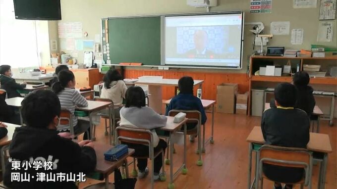 岡山県の津山市では、全ての小中学校で終業式が行われました。東小学校では寒さ対策のため体育館ではなく、各教室でリモート形式で式典が行われました。