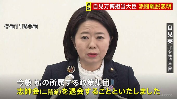自民党の派閥の政治資金パーティーをめぐり、安倍派と同じく派閥事務所が家宅捜索を受けた二階派に所属する自見万博担当大臣が、派閥を離脱する意向を表明しました。自見英子 万博担当大臣「引き続き閣僚という重…