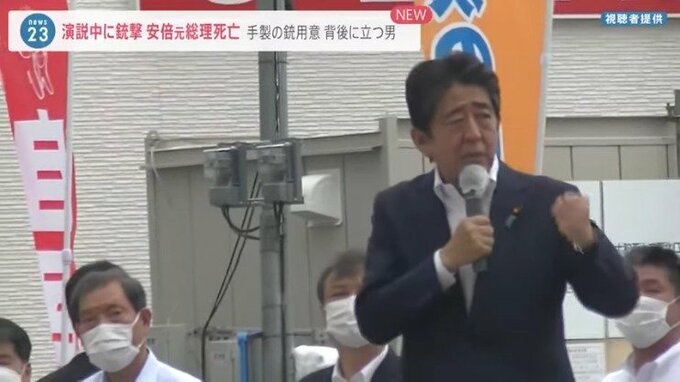 安倍晋三元総理は8日午前11時半ごろ、奈良市内で演説に立っていました。候補者の応援演説が始まって、約2分経ったのち・・・