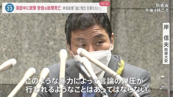 「今回の安倍元総理に対する銃撃はまさに民主主義に対する冒とくであります。特に参議院選挙のさなかに、このような暴力によって言論の弾圧が行われるようなことはあってはならない。断固、非難をしたいと思います」