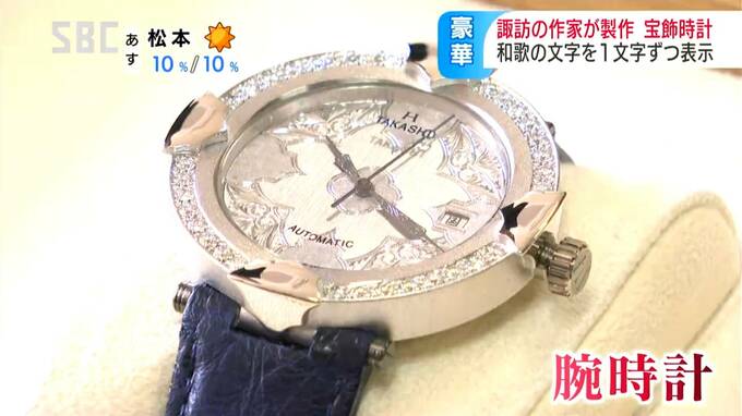 諏訪市で地元の時計作家が手がけた豪華な宝飾時計がお披露目されました。ホワイトゴールドやダイヤモンドを用いて作られた豪華な腕時計。市内の時計作家、平林隆(ひらばやし・たかし)さんが、7年ほど前に、完成…