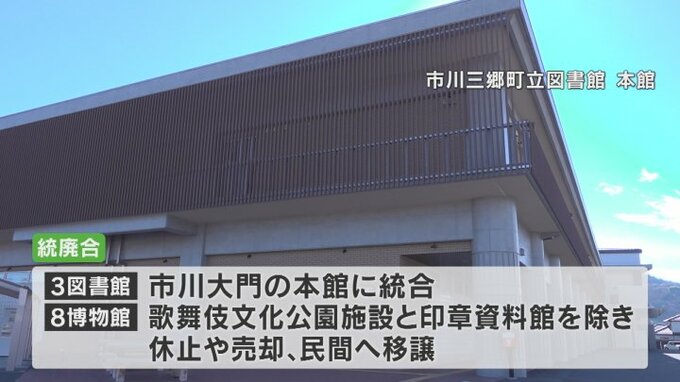 このうち公共施設の削減では、町内3つの図書館を本館に統合し、8つの博物館は歌舞伎文化公園の施設と印章資料館を除き、休止や売却、民間へ移譲するとしています。