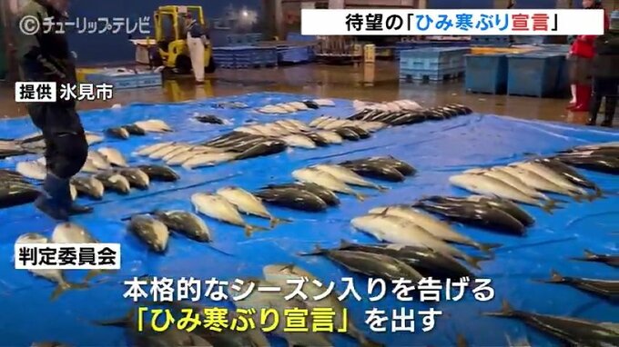 氷見漁協や仲買人などでつくる「判定委員会」が水揚げ量やブリの大きさを判断して、本格的なシーズン入りを告げる「ひみ寒ぶり宣言」を出しました。