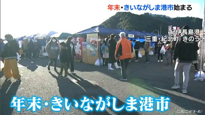 三重県紀北町(きほくちょう)で恒例の「年末・きいながしま港市(みなといち)」が始まり、大勢の人が訪れました。