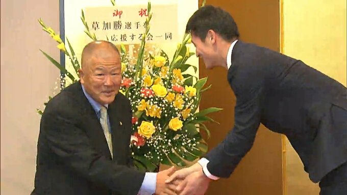激励会には草加投手と小・中学校時代に一緒にプレーした仲間や指導者らのほか、