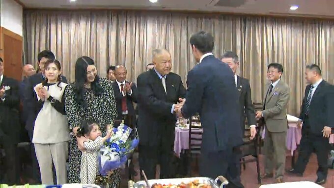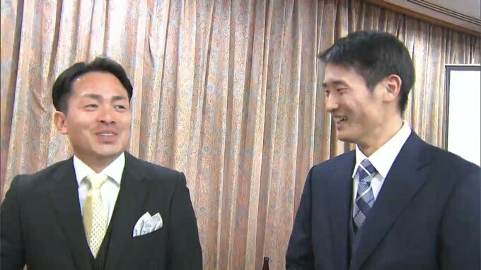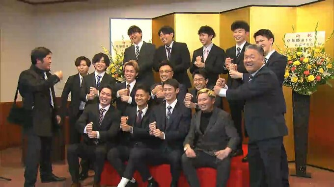 草加投手は久しぶりに再開した旧友や恩師らと思い出話に花を咲かせ、最後に大勢の前でプロでの活躍を誓いました。