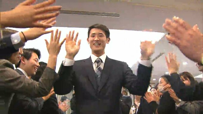 大きな歓声や拍手に少し照れた様子で入場した草加勝投手。