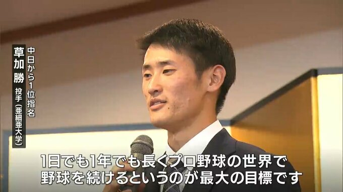 (草加勝 投手)「1日でも1年でも長くプロ野球の世界で野球を続けるというのが最大の目標です。