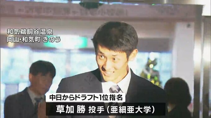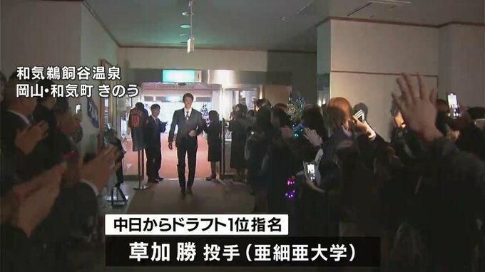 プロ野球中日ドラゴンズからドラフト1位指名を受けた草加勝投手の激励会が、きのう(23日)地元の岡山県和気町で開かれました。