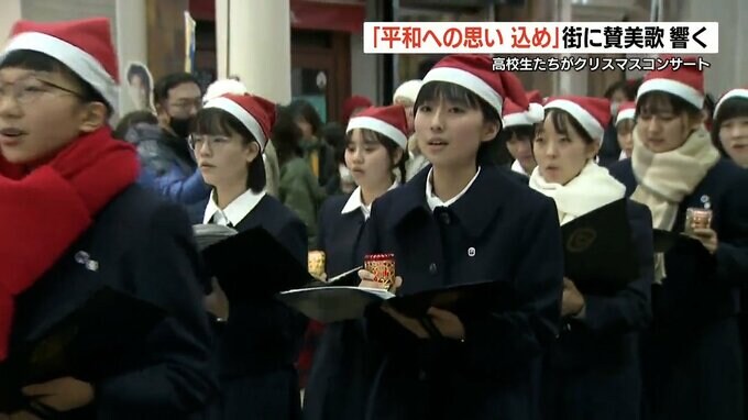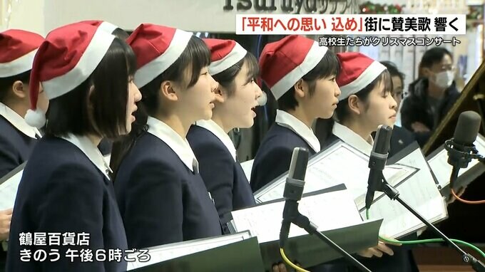 コンサートは鶴屋百貨店と熊本信愛女学院の合同で開いたもので、高校生たちが平和への思いを込めてクリスマスソングを披露しました。