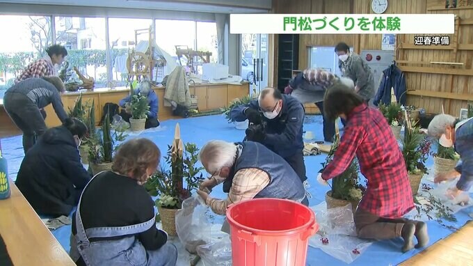 今年の体験会には、募集枠の4倍にあたる80人もの応募があったということで、抽選で選ばれた20人が午前と午後に分かれて門松づくりに挑戦しました。