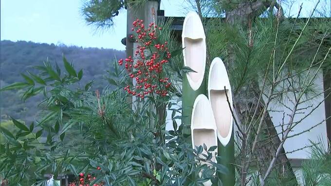 新年を前に高松市の栗林公園で、正月の入園者を迎える門松の設置が行われました。縁起物の松竹梅を使って門松を作っていくのは、栗林公園の庭師4人です。竹の後ろに松を配置して土を入れ、外側に梅、内側に南天を…