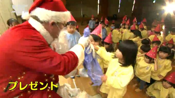 鈴の音とともに突然現れたサンタクロースに大興奮の園児たち。