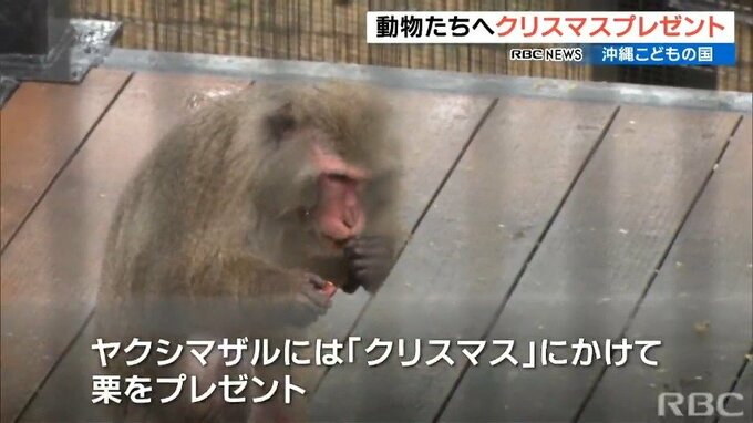 今年は11種類の動物に好物の餌などがプレゼントされました。このうち2019年に集団で脱走劇を繰り広げ一躍、全国的な話題となったヤクシマザルには“クリ”スマスにかけて栗がプレゼントされました。