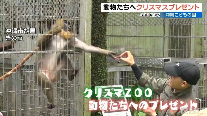 クリスマスイブの24日、沖縄市の沖縄こどもの国で動物たちに好物の餌などがプレゼントされました。