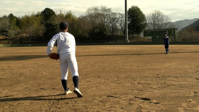ドラフト指名後、初めて岡山に帰郷した加藤竜馬投手。この日は真庭市の落合球場で、中学生の頃に在籍していた硬式野球チーム・美作スーパースターズヤングの練習に参加しました。