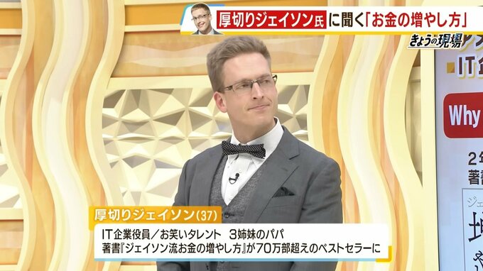 2024年、新たな年がはじまりましたが、老後2000万円問題をはじめ、尽きないお金の不安。著書「ジェイソン流お金の増やし方」が70万部超えのベストセラーとなった、IT企業役員でお笑いタレントの厚切りジェイソンさんが、お金を増やすプロとして自身のテクニックを解説。ジェイソンさんは、「増やしたいなら節約。収入を増やすより支出を減らすほうが費用対効果が大」が持論。ジェイソン流節約術に取り組む理由や、具体的な実践方法を例示します。2024年に始まる「新NISA」について、ジェイソン流投資術の基本についてもわかりやすく語りました。