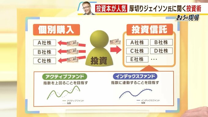 ――ちなみに投資信託は、例えばA社B社C社それぞれに投資をするのではなくて、たくさんの会社の株がひとまとまりのパッケージになっているものが投資信託、そこに投資するということになります。