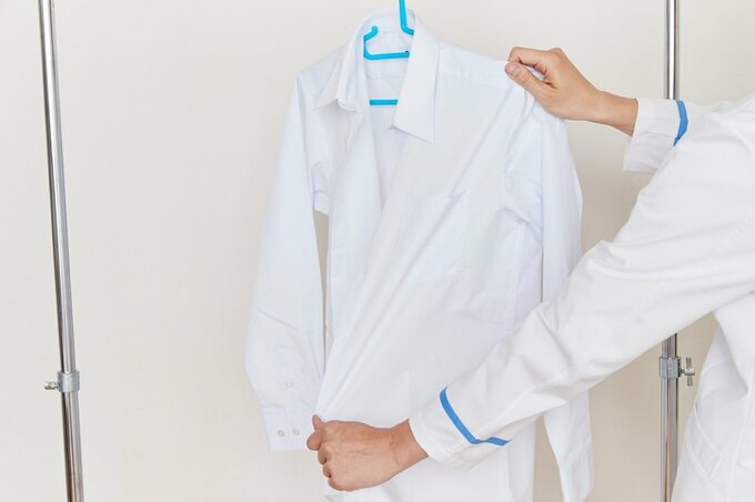 「もちろん、濡れたまま放置すると菌が増殖するのでニオイのもとになるのですが、シワにも効果があるんです。洗濯物が終わったまま放置しておくと、その分、シワが深く刻まれてしまうんです。なので、洗濯が終わったらすぐに取り出して、2~3回振りさばいてハンガーにかけてください。そして、ななめ、たて、よこにひっぱりシワをとります。丈夫なシャツ、TシャツならひっぱってOKです。