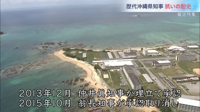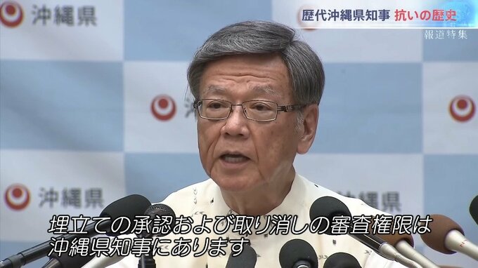 「沖縄県民にとっては、銃剣とブルドーザーによる強制接収を思い起こさせるものであります。埋め立ての承認および取り消しの審査権限は沖縄県知事にあります。政府から私が適法に行った承認取り消しを違法と決めつけられるいわれはありません」
