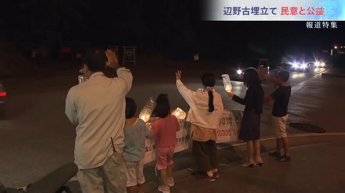 渡具知さん一家は、いまも毎週末、キャンドルを灯して基地の前に立つ。