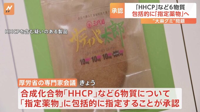いわゆる“大麻グミ”から検出された「HHCH」と似た合成化合物である6つの物質について、厚生労働省の専門家会議は「指定薬物」に包括的に指定することを承認しました。いわゆる“大麻グミ”の問題を受け、厚労省…