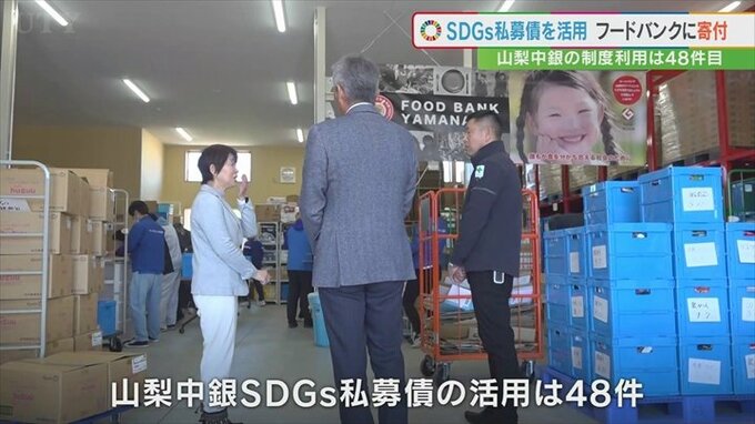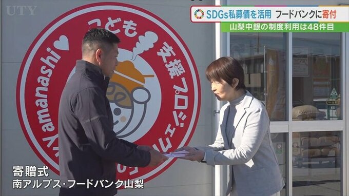 SDGsの取り組みを支援する山梨中央銀行の制度を活用して山梨市の建設業者がフードバンク山梨に寄付をしました。