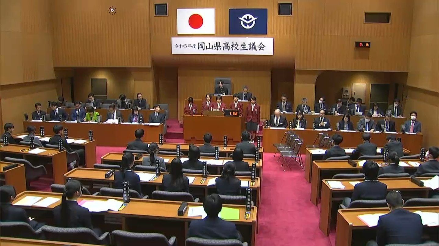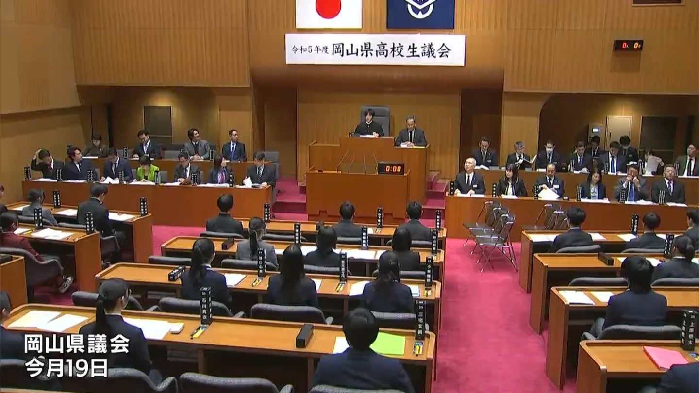 岡山県高校生議会は、生徒が感じている身近な疑問や課題についての質問に現職の県議会議員が答弁し、