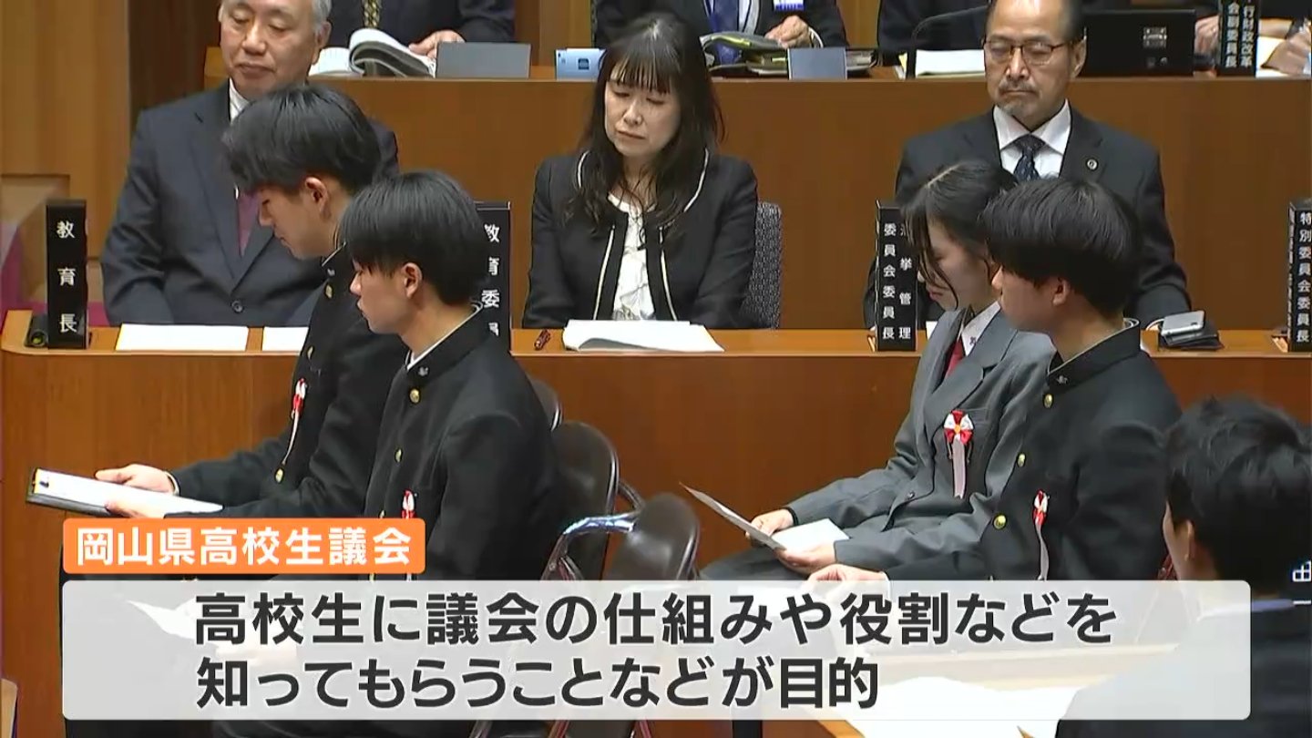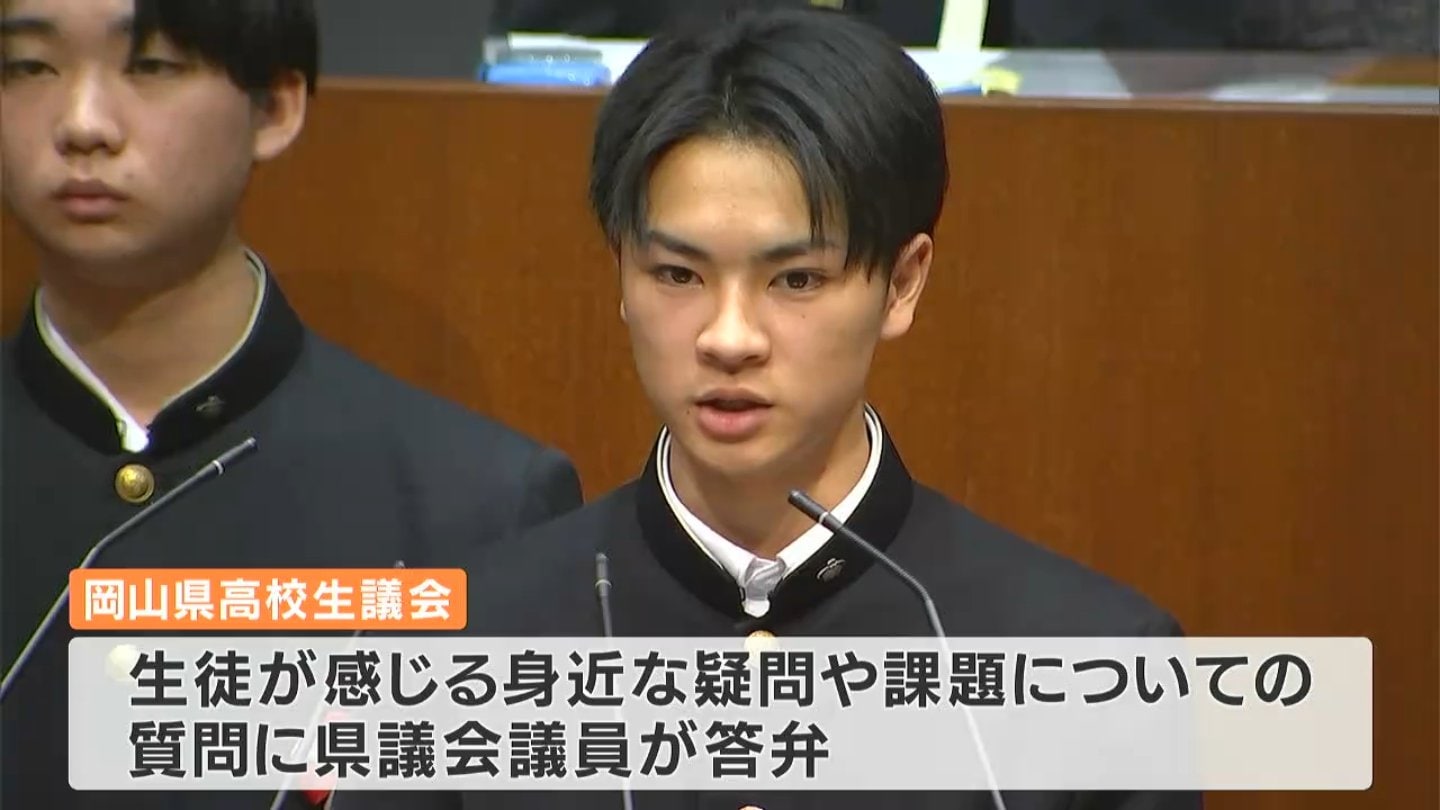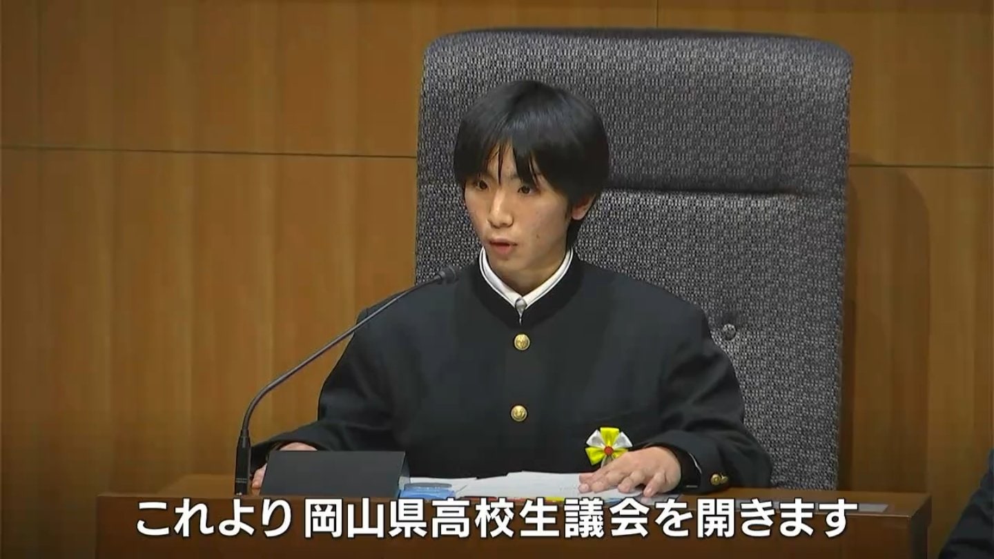 岡山県議会の演壇に高校生が立ちました。生徒が県政の課題などについて自ら県議会議員に質問する高校生議会が12月19日開かれました。