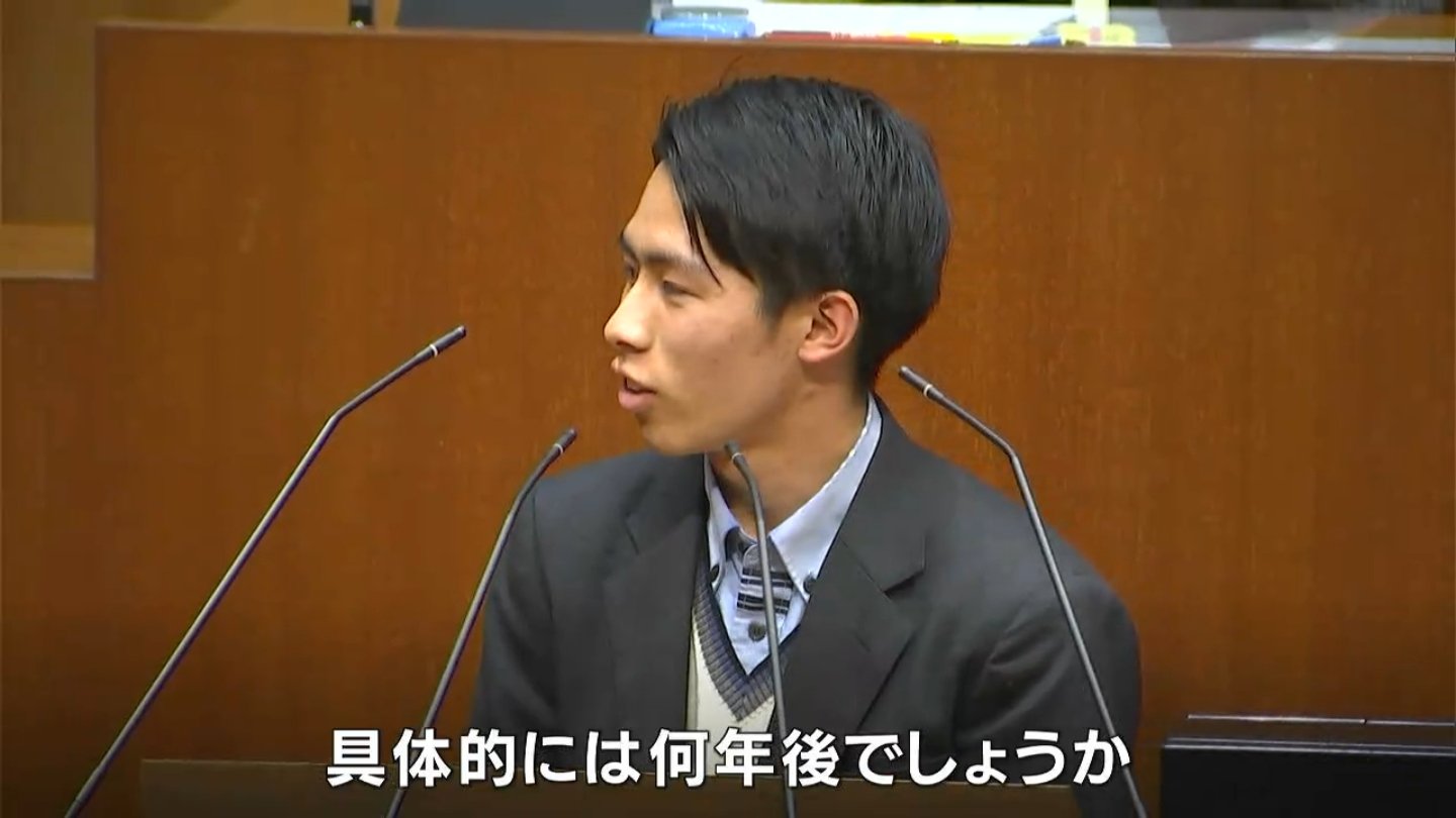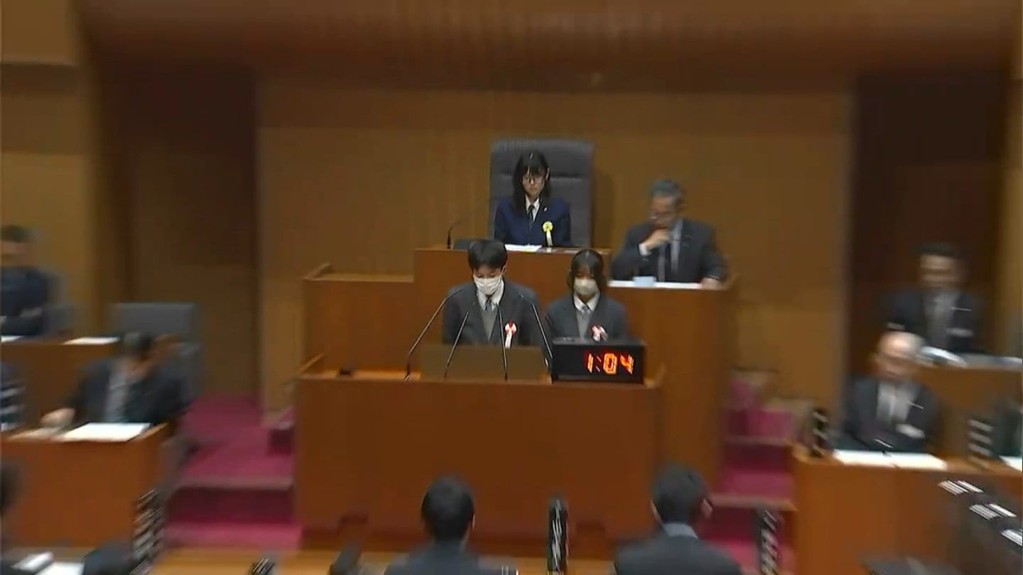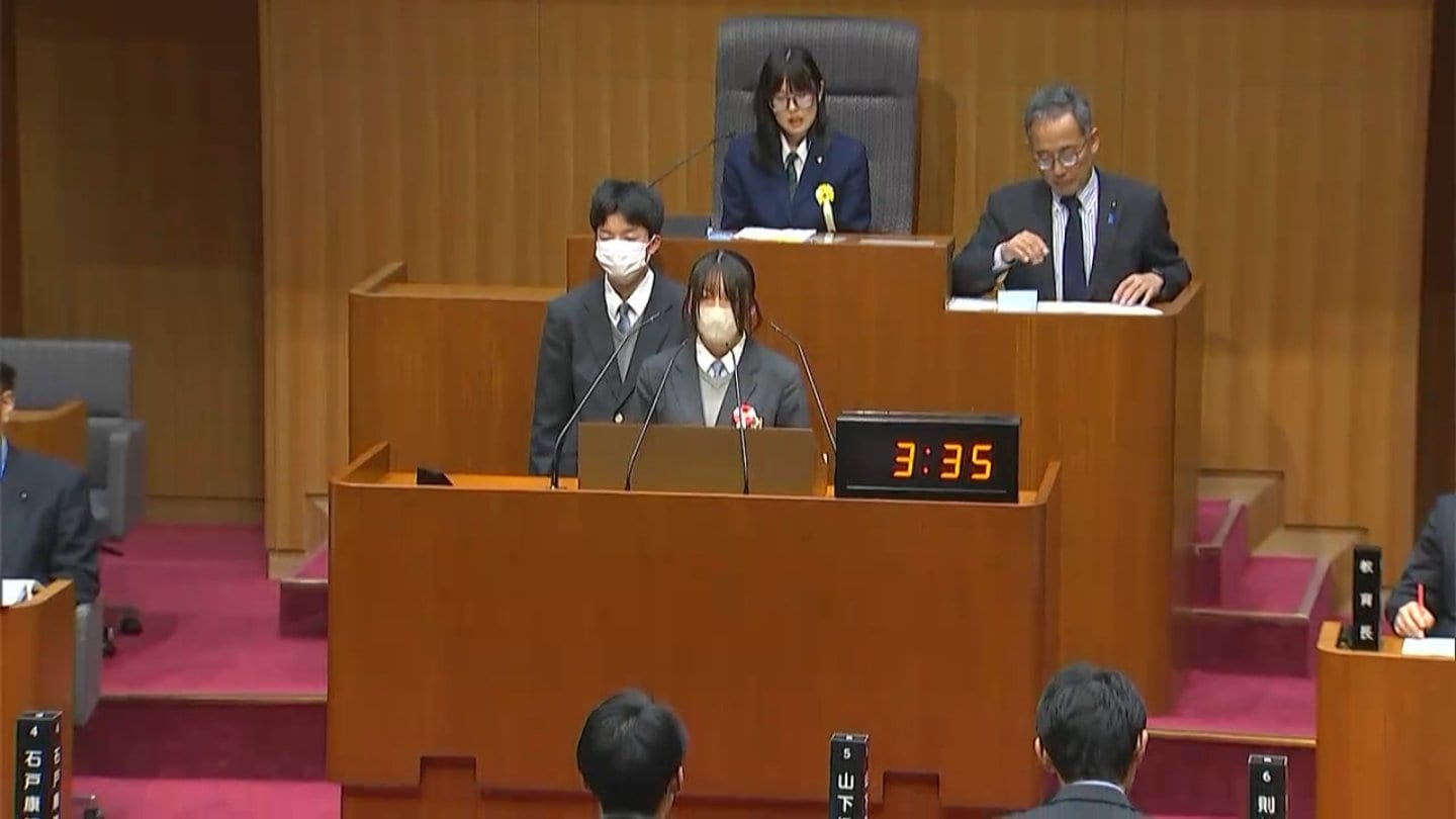 岡山県議会の演壇に高校生が立ちました。生徒が県政の課題などについて自ら県議会議員に質問する高校生議会が12月19日開かれました。