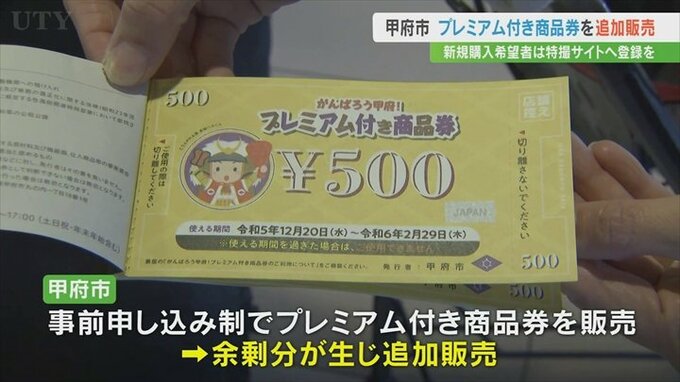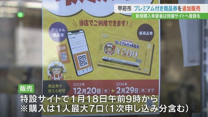 甲府市は事前の申し込み制でプレミアム商品券を販売した結果、余りが生じたため追加で販売することを決定しました。