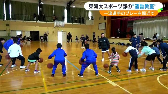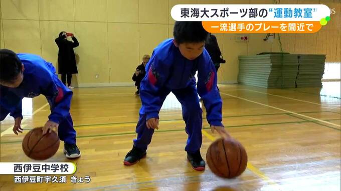 東海大学の男子スポーツ部の選手たちが12月27日、静岡県西伊豆町の中学校を訪れ、地元の小中学生を対象にスポーツ教室を開きました。