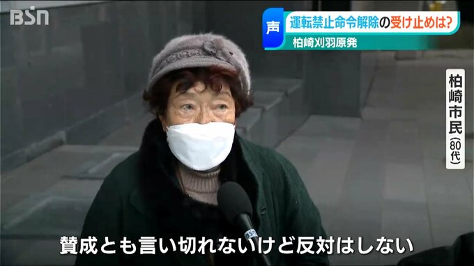 【柏崎市民は】「このままの状態だと柏崎も経済が回っていかない部分もあるかと思うので、なかなか難しい判断だとは思うが、私としては安全さえ確認されれば稼働してもいいのでは」