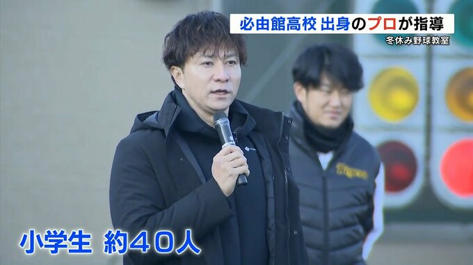 この野球教室は必由館高校の野球部OB会が企画したもので、熊本市内の野球チームに所属する小学生およそ40人が参加しました。